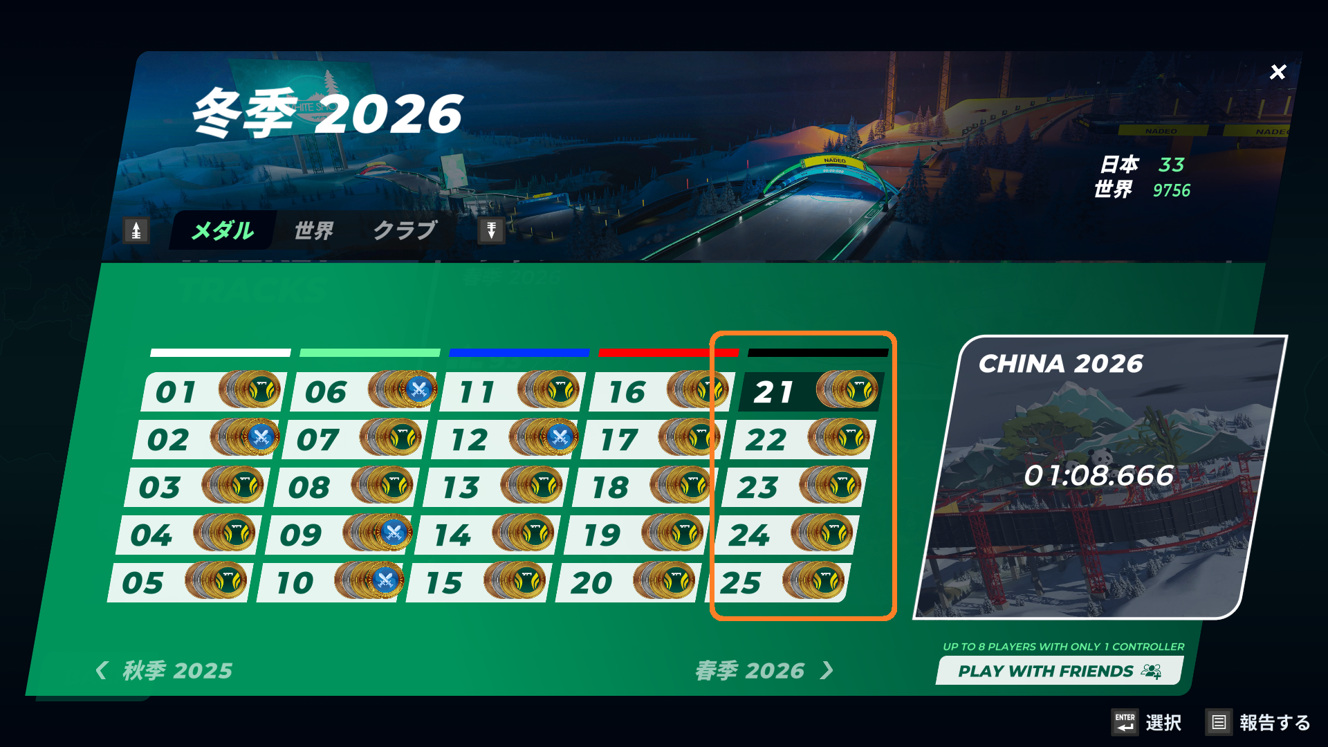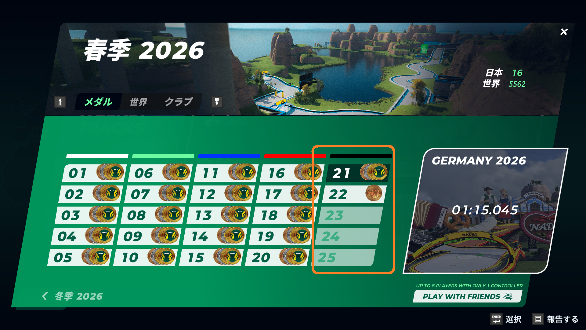 2026年冬季・春季の公式キャンペーンにあるマップ21~25が対象という、トラックマニア初の試みになっています。合計10マップです。