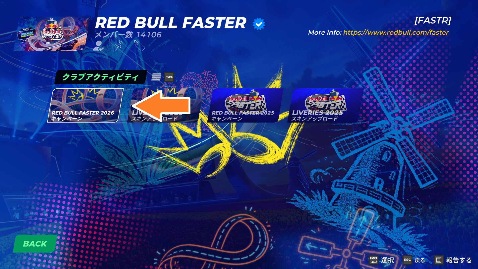 トラックマニアの「クラブ」⇒「RED BULL FASTER」⇒「RED BULL FASTER 2026」というキャンペーンで公開済みマップを確認できます。