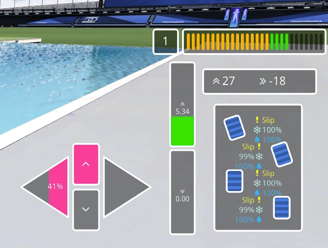 タイヤの状況(ウェットやアイスなど)を教えてくれる。タワー挑戦では車の状況を掴まないと即落下につながるため入れておきたい。