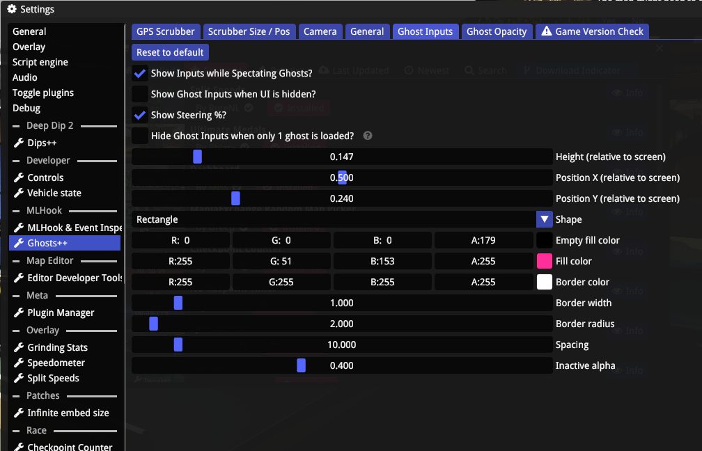 入力状況表示に関する設定はGhost Inputsタブで行えます。