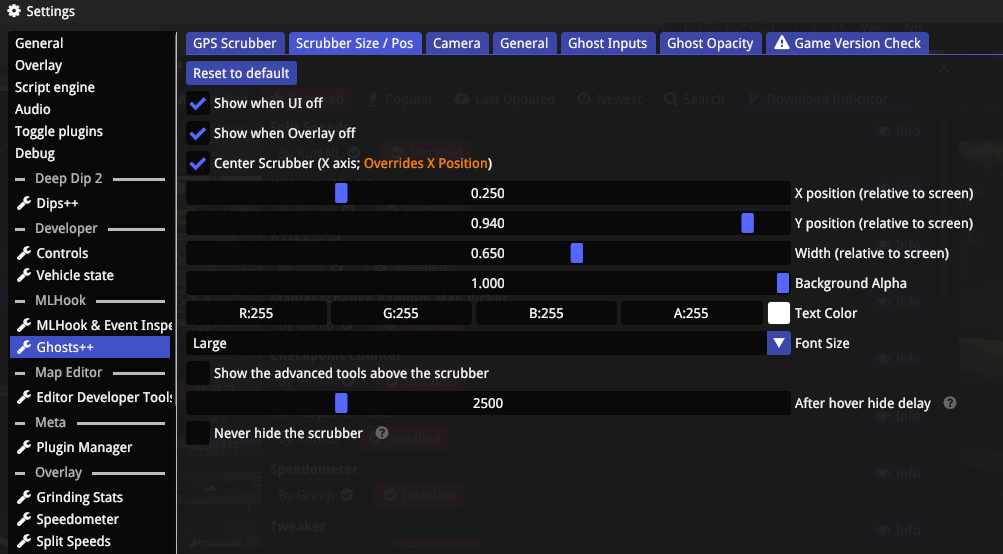 リプレイ(ゴースト)を再生中にシークバーや入力状況を表示できます。