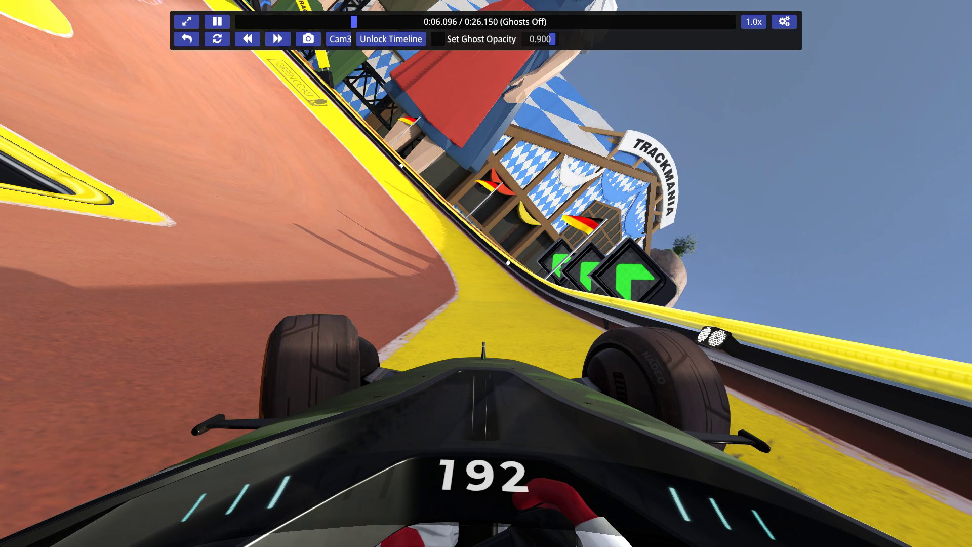 ドライバーの一人称視点です。このカメラでなければ見えにくいようなセクション(例えばループ)では、このカメラに強制的に切り替わるトリガーが設置されていたりします。もちろん、このカメラをメインに使用しているプレイヤーも存在します。