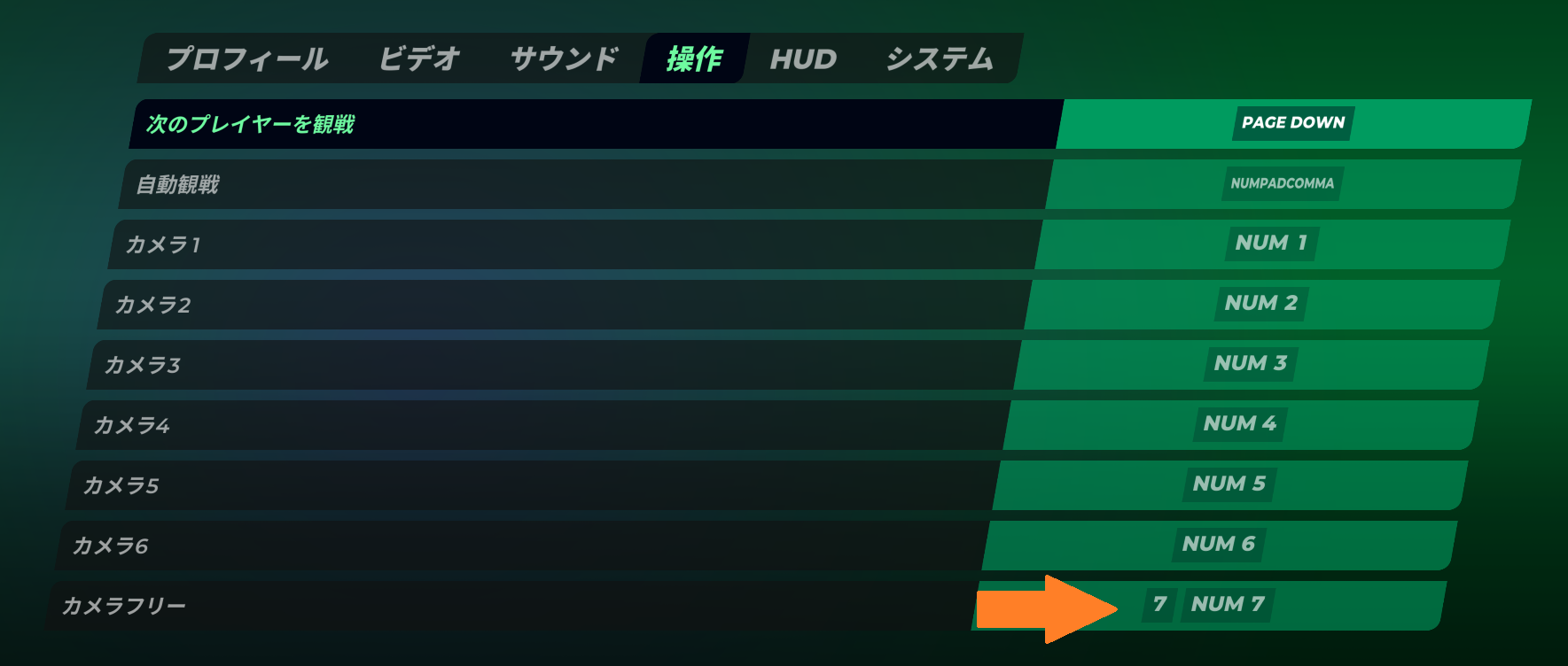 デフォルトでは、NUMパッド(テンキーエリア)の7に割り当てがあります。別途割り当てを行いたい場合は、設定の「操作」タブから設定できます。